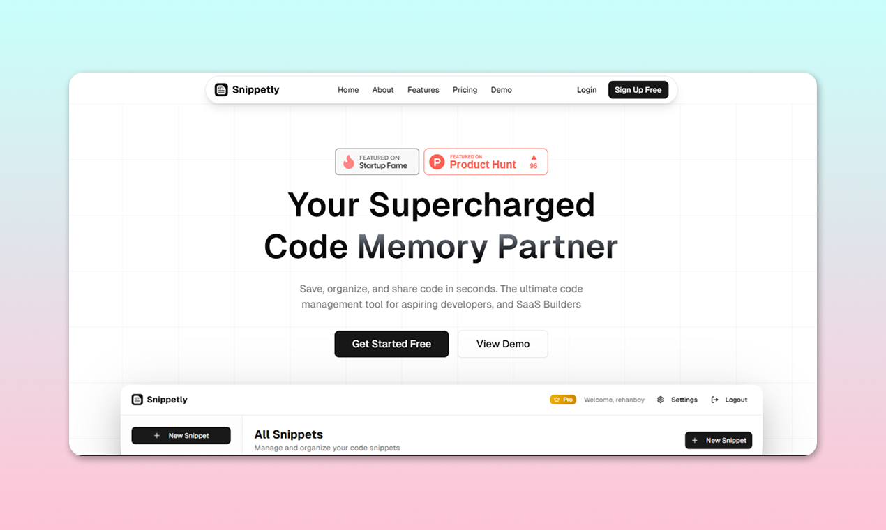Save, organize and resue code. the ultimate code managemnt tool for devs and saas builders. your personal snippet vault never lose a line of code again
